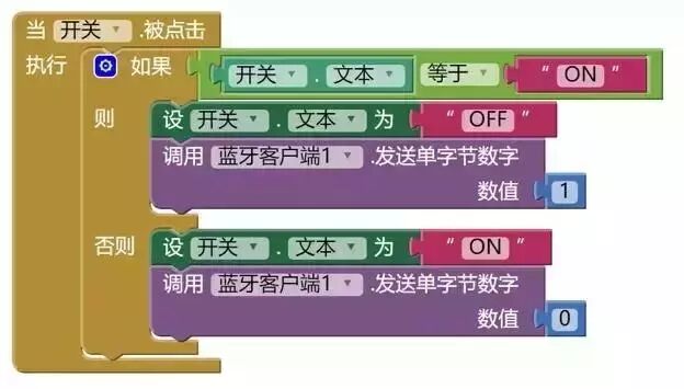 LED長(zhǎng)亮之后,代表藍(lán)牙連接成功。接下去繼續(xù)編寫(xiě)藍(lán)牙程序,讓按鈕處于“ON”和“OFF”時(shí)發(fā)送不同的數(shù)值。