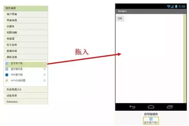 藍(lán)牙相關(guān)程序的編寫(xiě),需要添加一個(gè)“藍(lán)牙客戶端”組件,它是非可視組件,即在APP中看不見(jiàn)它。