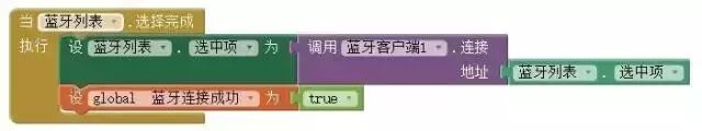 初始化時(shí),變量“藍(lán)牙連接成功”為“false(假)”,當(dāng)藍(lán)牙地址選擇完成之后,將其變?yōu)?ldquo;true(真)”。