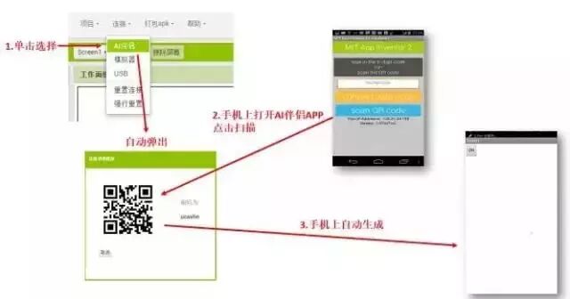 手機(jī)上打開(kāi)AI伴侶APP,掃描網(wǎng)頁(yè)上AI伴侶生成的二維碼,即可快速的運(yùn)行編寫(xiě)好的APP,具體操作流程如下: