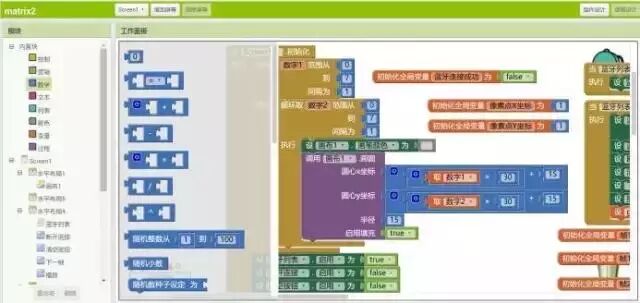 這些模塊的顏色與Scratch相似,按照不同的功能種類,有不同的顏色,大家可以根據(jù)示例程序中各模塊的顏色去模塊庫(kù)中尋找,這里不多做贅述。