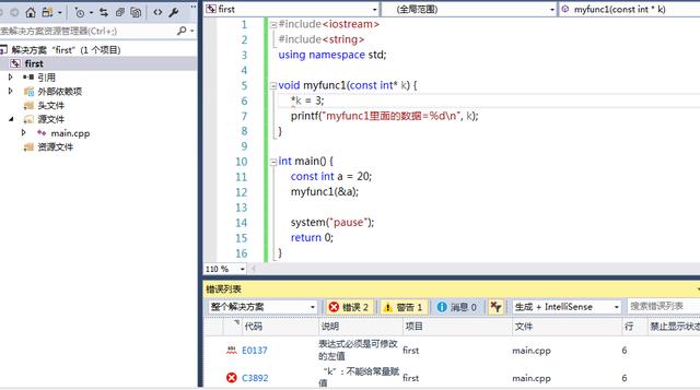 #include<iostream>#include<string>using namespace std;void myfunc1(const int* k) {*k = 3;printf("myfunc1里面的數(shù)據(jù)=%d ", k);}int main() {const int a = 20;myfunc1(&a);system("pause");return 0;}