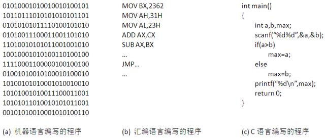 寫程序也叫編代碼,用什么語言編呢?用機器語言編的01串,機器可以直接運行,運行效率高,但編寫和維護都很困難。有人想到,如果保留機器指令的結構,用便于記憶和理解的符號和名字(字母和10進制數(shù)字組成的字符串),去一一對應操作碼和地址,寫好后再通過查指令清單去轉換為01串,肯定要易于編寫和維護。至于如何查找和轉換,其實這正是計算機所擅長的,編寫一個這樣的轉換程序即可,這種思想下的語言就是匯編語言,轉換程序就是匯編器(匯編語言操作符號的字符串與機器語言操作碼的01串是一一對應的關系)。更進一步,用更抽象更接近自然語言的語句和數(shù)據(jù)結構來描述操作符號和變量名字,就是高級語言和編譯器(或解釋器)。