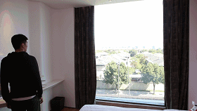 到達(dá)房間門口后,攝像頭識別出身份,房門自動開啟,客人就能進(jìn)去休息了。