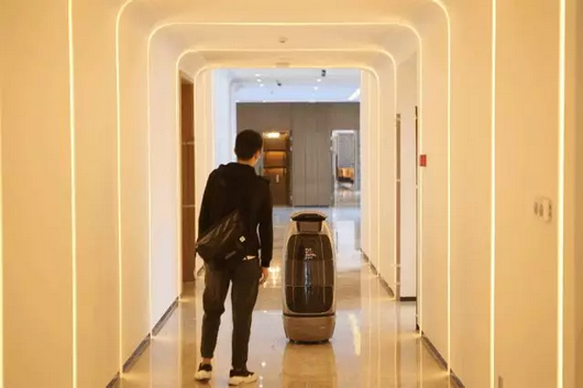 登記完畢后,電梯會啟動等候系統(tǒng),這時機(jī)器人帶客人去房間就不必再費(fèi)時間等電梯了。