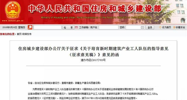 住建部發(fā)布:《關(guān)于培育新時期建筑產(chǎn)業(yè)工人隊伍的指導(dǎo)意見(征求意見稿)》
