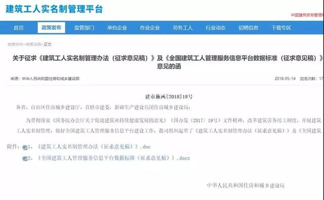 《建筑工人實名制管理辦法(征求意見稿)》