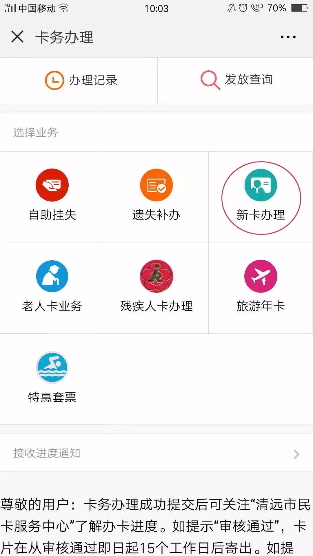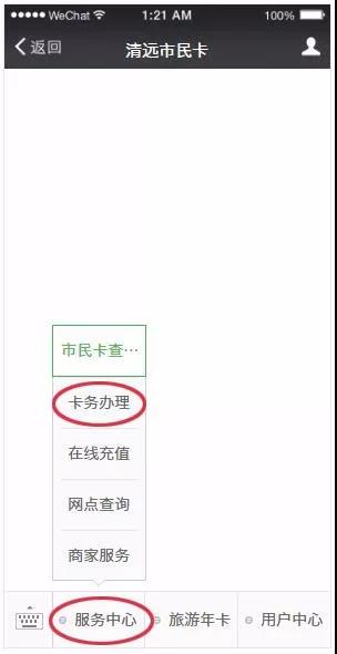 選擇【服務(wù)中心】-【卡務(wù)辦理】