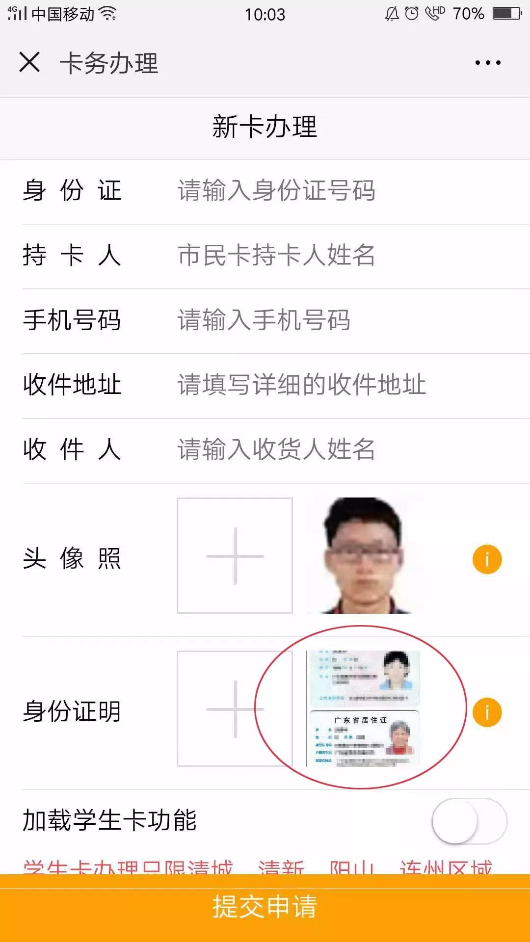 市民上傳上述資料并支付辦卡費(fèi)用后